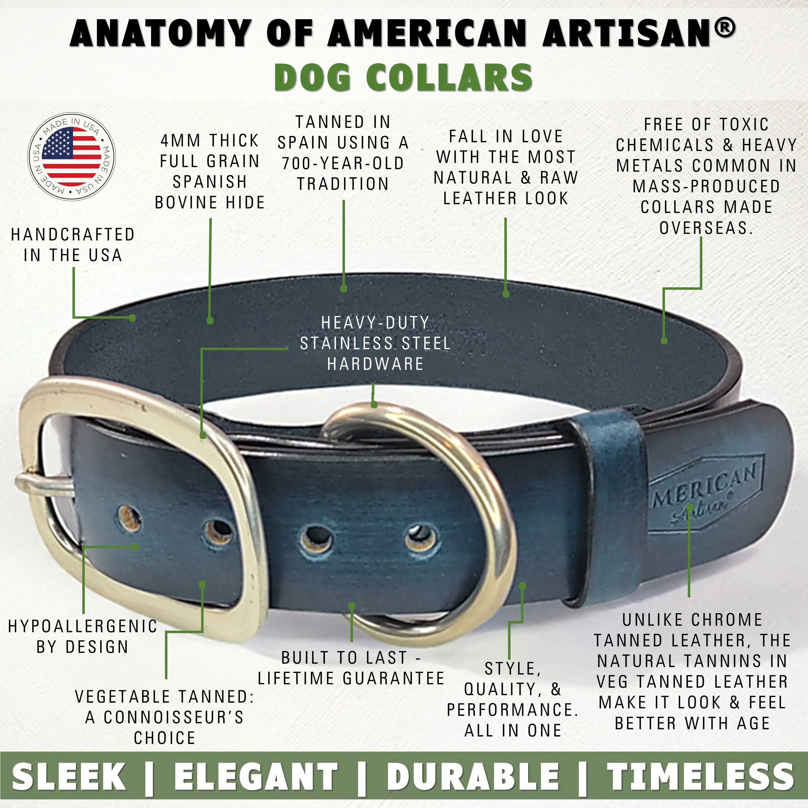 Scroll down to learn more, check out our entire leather dog accessories collection for other colors or, learn about the American Artisan® brand promise.Â